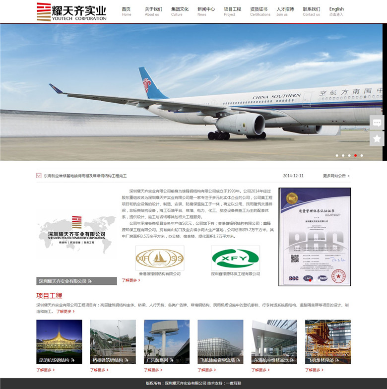 | 項(xiàng)目需求概況: | 寶安網(wǎng)站建設(shè) --- 一度互聯(lián) :http://m.ga-tec.cn 耀天齊:http://www.cnyoutech.com/ 深圳耀天齊實(shí)業(yè)有限公司前身為深圳市雄鋒鋼結(jié)構(gòu)有限公司成立于1993年。公司2014年經(jīng)過(guò)股東重組改名為深圳耀 |