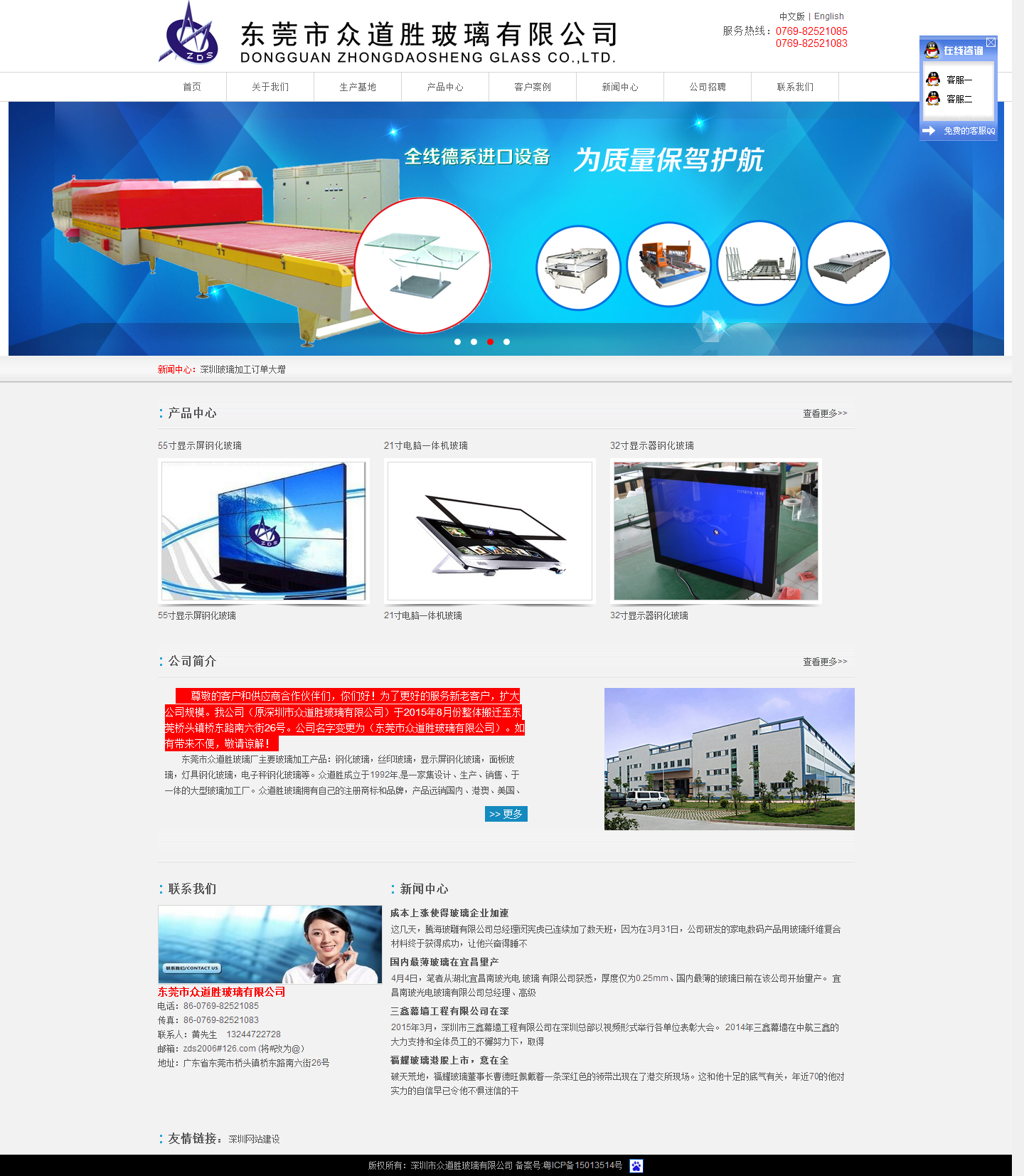 尊敬的客戶和供應商合作伙伴們,你們好!為了更好的服務新老客戶,擴大公司規(guī)模。我公司(原深圳市眾道勝玻璃有限公司)于2015年8月份整體搬遷至東莞橋頭鎮(zhèn)橋東路南六街26號。公司名字變更為(東莞市眾道勝玻璃有限公司)。如有帶來不便,敬請諒解! 東莞市眾道勝玻璃廠主要玻璃加工產品:鋼化玻璃,絲印玻璃,顯示屏鋼化玻璃,面板玻璃,燈具鋼化玻璃,電子秤鋼化玻璃等。眾道勝成立于1992年,是一家集設計、生產、銷售、于一體的大型玻璃加工廠...
